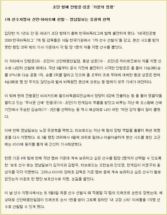 | [한국일보]2009 KB리그 '手싸움 열전' 카운트다운 |